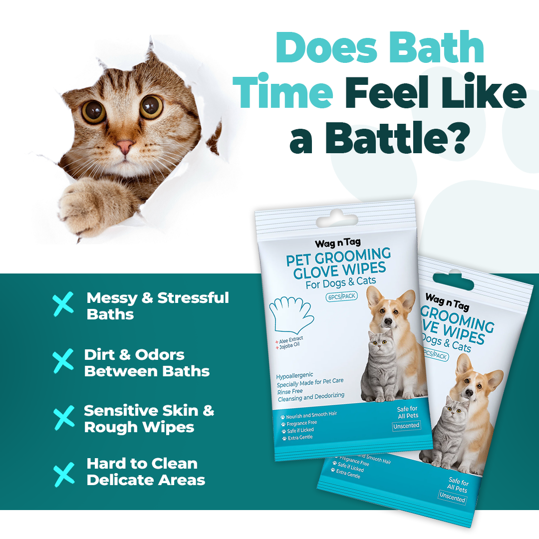 Wag N Tag Pet Grooming Glove Wipes are perfect for quick clean-ups and in-between grooming, but they do not fully replace traditional baths. They help maintain freshness and hygiene between washes.